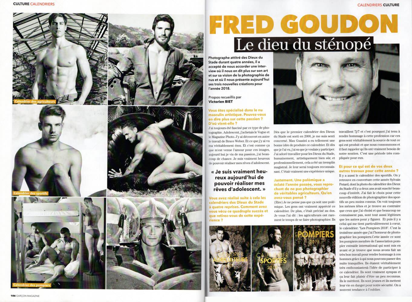 Fred Goudon a marqué les esprits comme l’un des photographes du sulfureux calendrier des DIEUX DU STADE, où les joueurs du Stade Français et du Rugby à 15 sont mis en lumière de façon érotique et artistique comme de véritables dieux grecs.